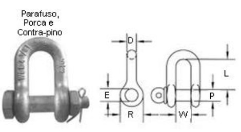 f) manilhas, se usadas no sistema de suspensão, devem ser do tipo com porca e contrapino;