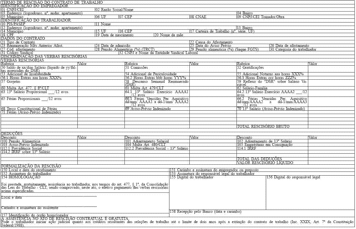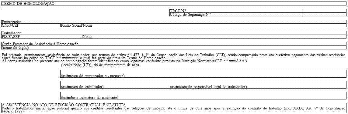 Quando devida a homologação, a autoridade competente preencherá o campo 154 nas 4 (quatro) vias do Termo de Rescisão.