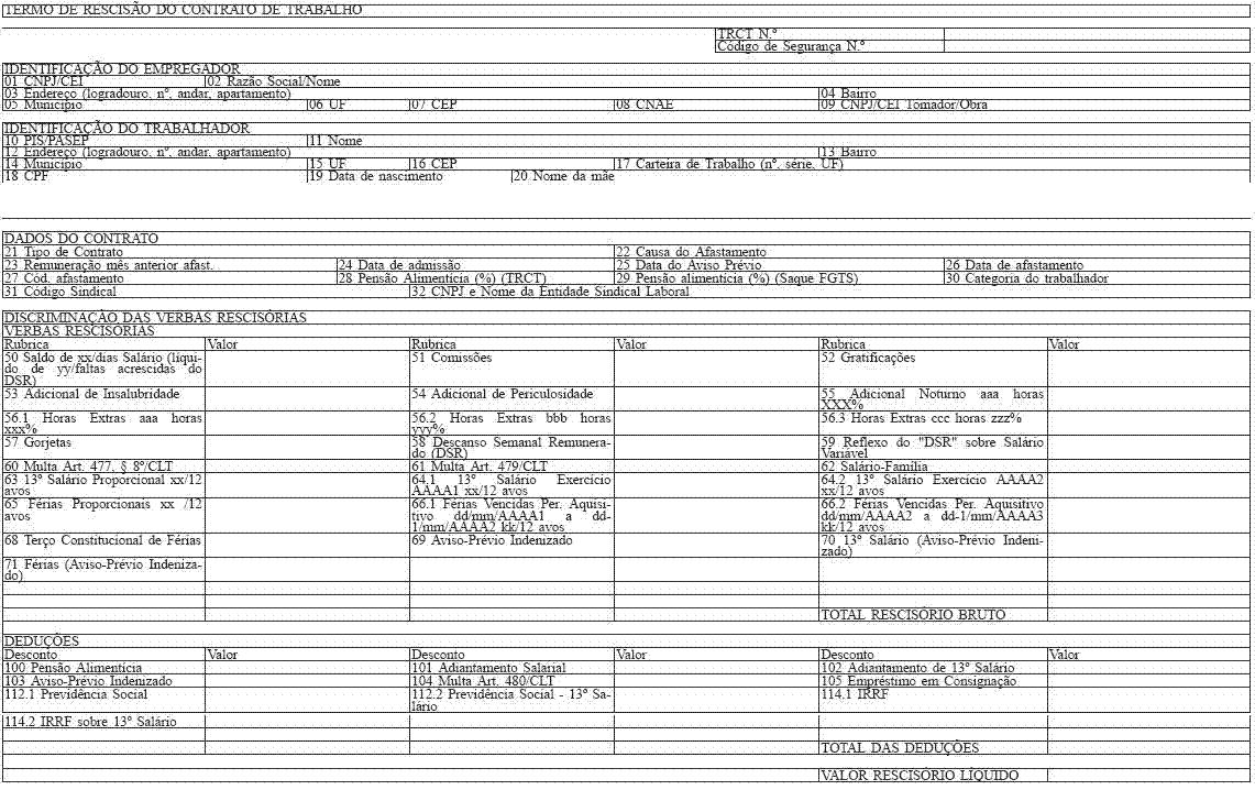 I - Termo de Rescisão de Contrato de Trabalho - Anexo II;