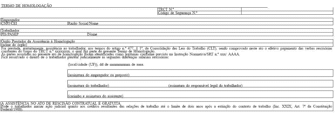 Art. 3º Nas rescisões contratuais sem necessidade de assistência e homologação, bem como naquelas em que não for utilizado o Homolognet, será utilizado o TRCT previsto no Anexo I desta Portaria.