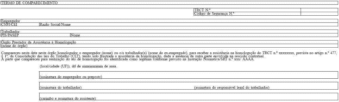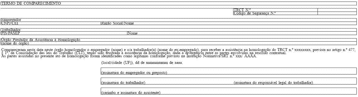 V - Termo de Comparecimento de ambas as partes, sem homologação da rescisão em face de discordância quanto aos valores constantes no TRCT - Anexo VI; e